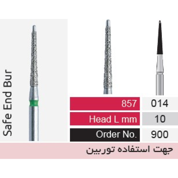فرز الماسه توربین مدل سیف اند۸۵۷- Diamond Burs Safe End Bur