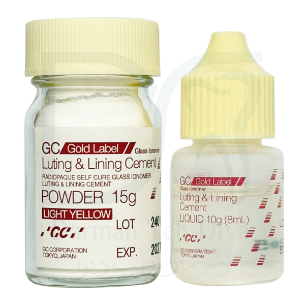 سمان لوتینگ و لاینینگ GC Gold Label 1 یکی از بهترین و باکیفیتترین گلاس آینومرهای برند GC است که ساخت کشور ژاپن میباشد. این سمان دائمی با پایه استرنیوم، دارای دوام بالا و چسبندگی قوی است و به صورت پودر (۱۵ گرم) و مایع (۸ میلیلیتر معادل ۱۰ گرم) عرضه میشود.